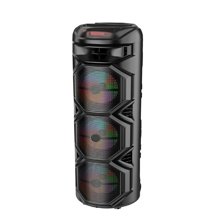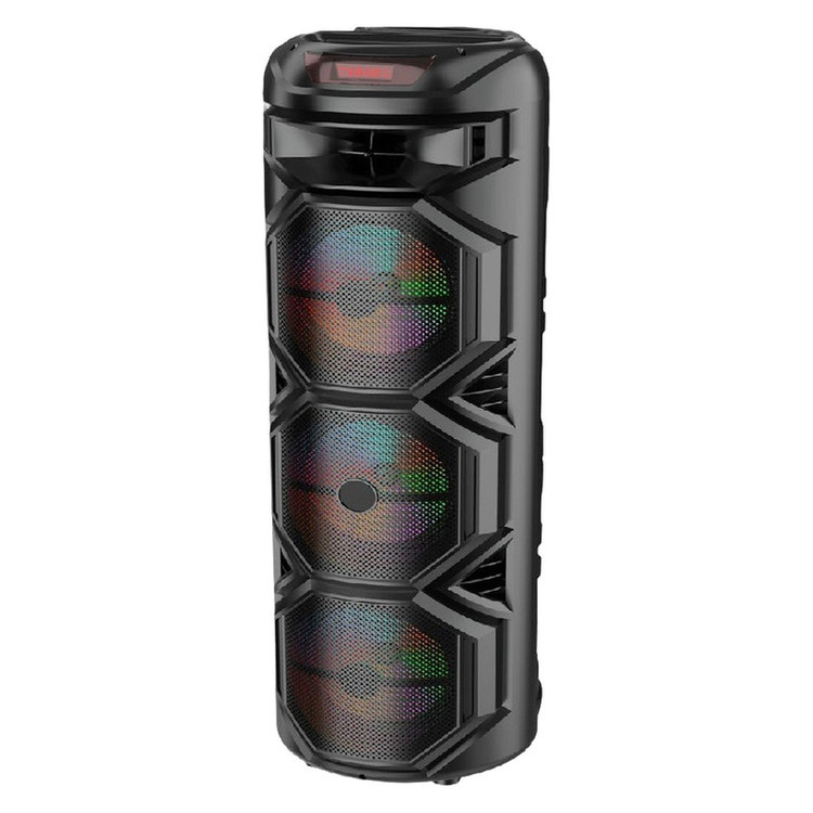 اسپیکر جدید سه ساب(سه باند) ZQS 8301 محصول جدید از شرکت ZQS که در ایران علاقمندان زیادی دارد این اسپیکر زیبا و باکیفیت دارای سه باند 8 اینچ است که همین امر باعث شده پرتاب صدای خوبی نسبت به اسپیکرهای 2 باند داشته باشد. طراحی شیک و زیبا با چرخهای روان باعث شده که شما بتوانید به راحتی آن را حمل کنید. یکی از مهمترین ویژگیهای این محصول جدید که داری میکروفون وایرلس(بیسیم) قابل شارژ با پورت TPC است که جدیدا اسپیکرهای شرکت zqs این قابلیت را اضافه کرده است. ریموت کنترل، کابل شارژ TPC, باطری 4500 میلیآمپر ساعت، توان خروجی 60 وات، اتصال کارت حافظه، USB.AUX و بلوتوث. این ویژگیها باعث شده که این محصول صدای باکیفیت،قیمت مناسب،جمع و جور،بیس نرم، برای شرکت در مجالس شادی و دورهمی خانوادگی شما عزیزان باشد.